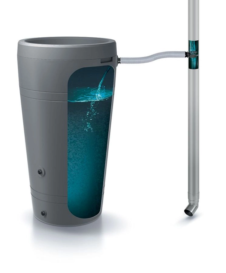 Szeroki, elastyczny wąż oraz łapacz wody zapewniają płynny przepływ nawet przy ulewnych deszczach. Minimalizuje przelewanie i straty wody.