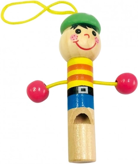 Wesoły drewniany gwizdek w kształcie ludzika to świetne narzędzie rozwijające słuch dziecka i zabawny dodatek, który jednocześnie sprawdzi się jako gwizdek sygnałowy lub piłkarski.