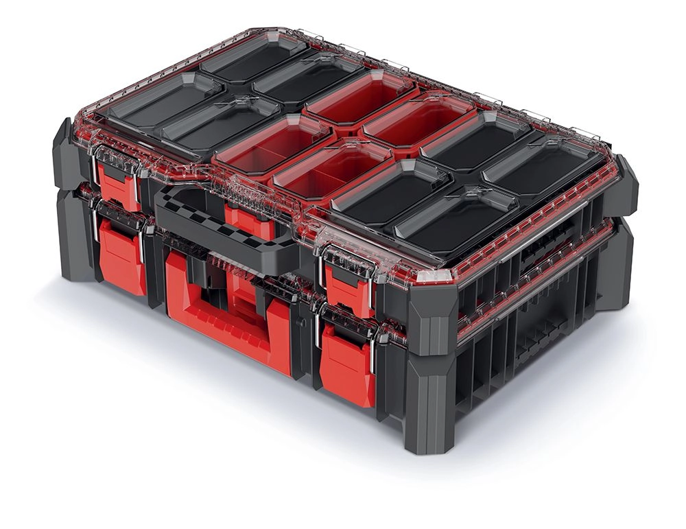 Organizery zaprojektowano do codziennego użytkowania – łączą funkcjonalną przestrzeń na drobne elementy i bardziej masywne części. Praktyczne przegrody utrzymują zawartość na miejscu, przezroczysta pokrywa (jeśli jest w zestawie) umożliwia szybką orientację, a mocne klipsy chronią przechowywane przedmioty podczas transportu.