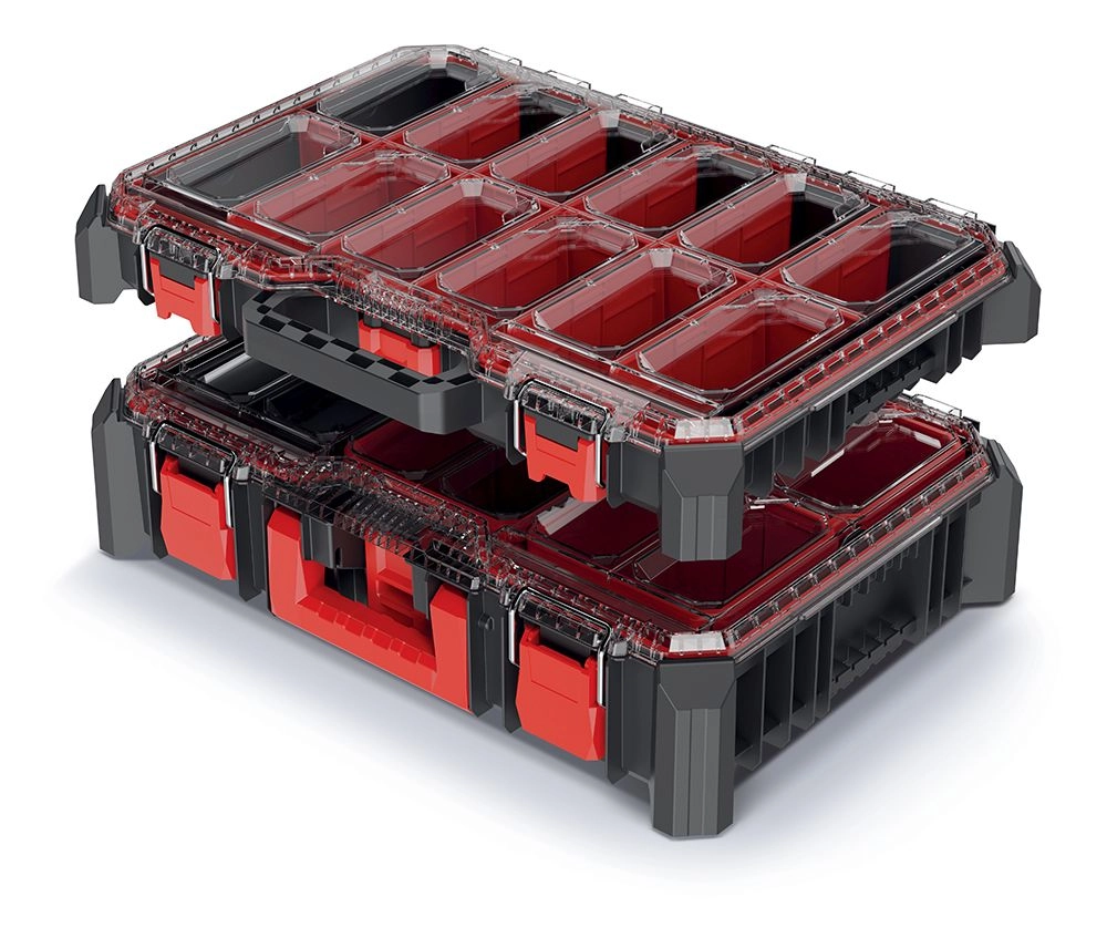 Organizery są odpowiednie na śrubki, kołki rozporowe, gwoździe, bity, wiertła czy akcesoria kreatywne. Dzięki modułowemu podziałowi łatwo dostosujesz wnętrze do bieżących potrzeb i utrzymasz porządek bez wysiłku.
