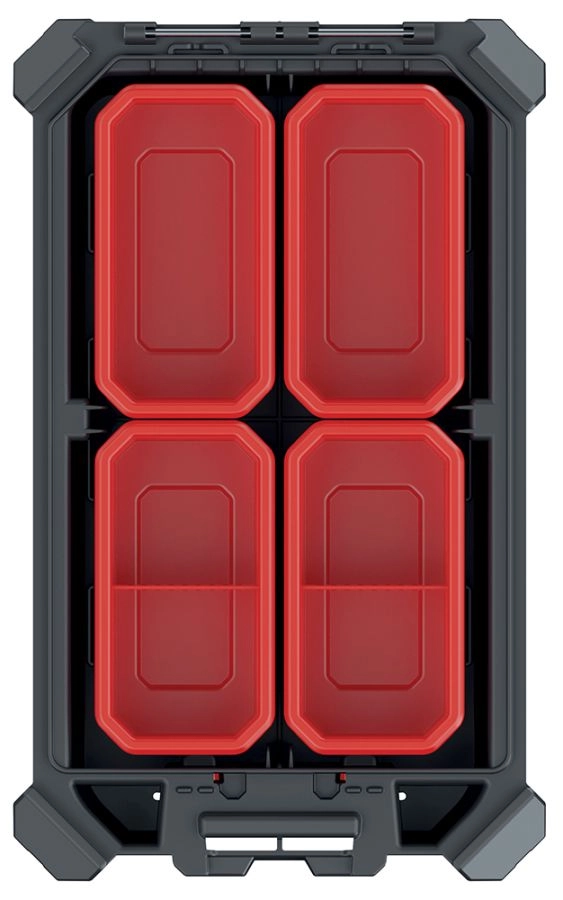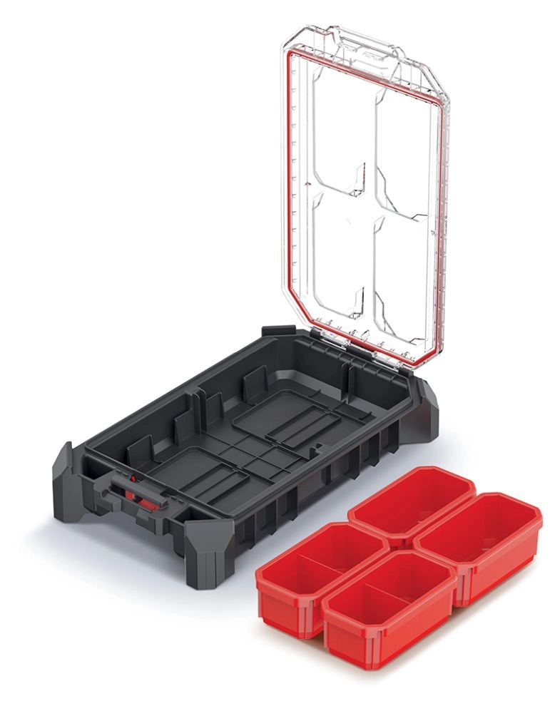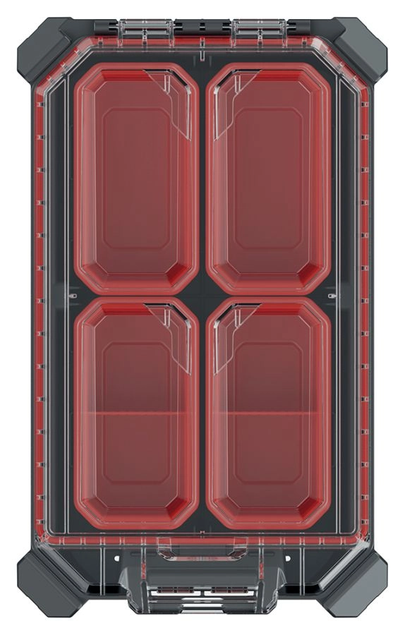 Organizer MSX to idealny wybór dla profesjonalistów i domowych warsztatów. Przejrzysty układ i solidna konstrukcja chronią zawartość podczas przechowywania i transportu. Przezroczysta pokrywa z wytrzymałego poliwęglanu zapewnia szybki podgląd bez otwierania, a metalowe zawiasy z pewnym zamknięciem trzymają wszystko bezpiecznie na miejscu.