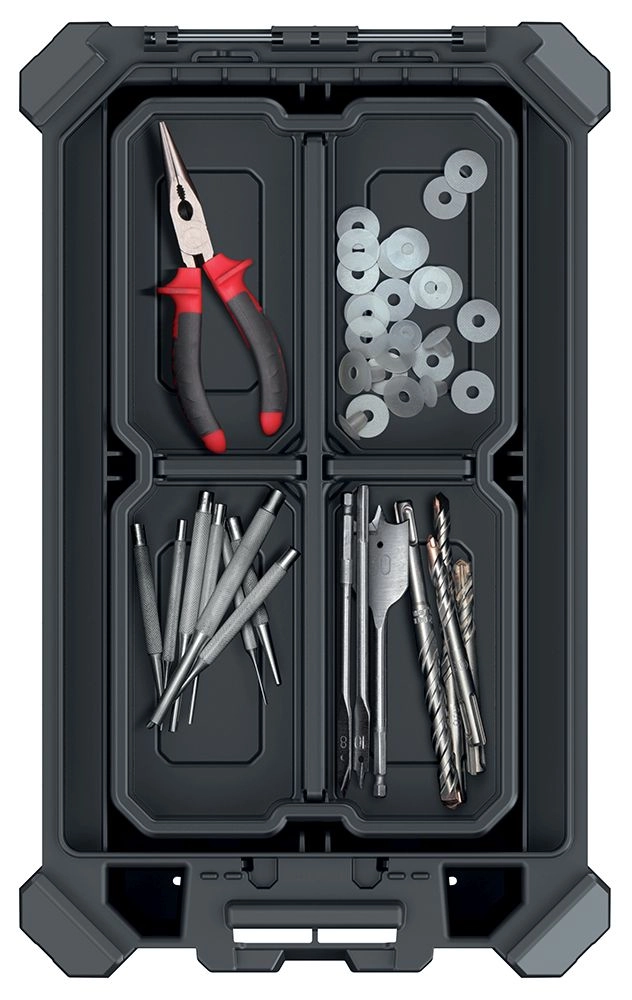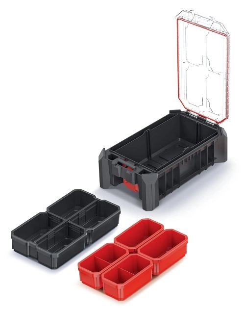 Praktyczny organizer MSX w kolorze czarnym wprowadza porządek w warsztacie i w domu. Dzięki przezroczystej pokrywie masz natychmiastowy podgląd zawartości, wyjmowane przegrody umożliwiają elastyczne rozmieszczenie, a modułowa konstrukcja pozwala łączyć go z innymi boxami z serii MSX. Wykonany z wytrzymałego plastiku dla długiej żywotności.