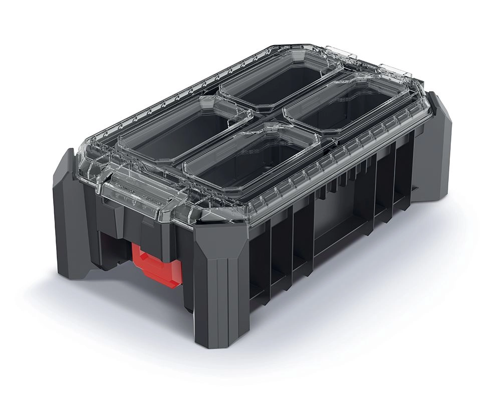 - Elastyczne rozmieszczenie – wyjmowane przegrody dla różnych typów i rozmiarów części