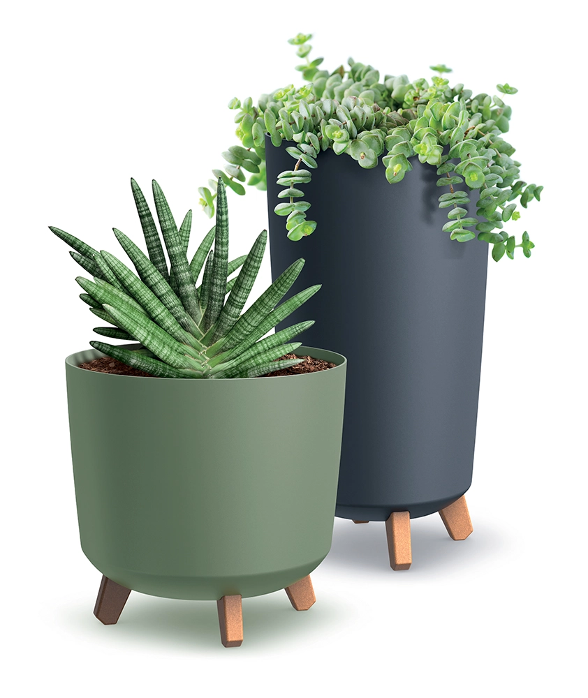 Podwyższona konstrukcja na krótkich nóżkach zapewnia stabilność, chroni powierzchnię pod doniczką i wspiera zdrowszy system korzeniowy.