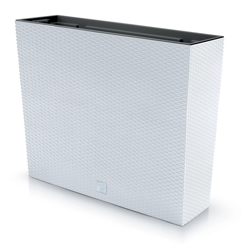 Stylowa donica o prostokątnym kształcie z imitacją rattanowego splotu doskonale sprawdzi się w ogrodzie, na tarasie, balkonie i przy wejściach. Dzięki wytrzymałemu tworzywu z stabilizacją UV na długo zachowuje kolor i kształt oraz nadaje się do całorocznego użytkowania.