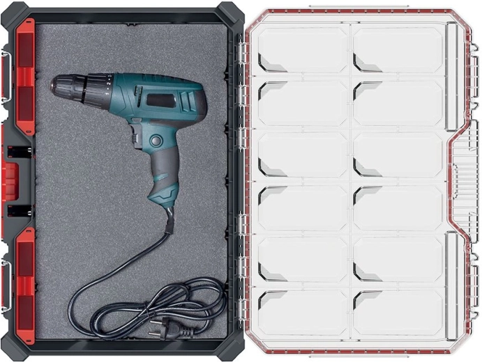 Wykonaj precyzyjne wycięcia na wkrętarki, mierniki czy akcesoria – wystarczy marker i ostry nóż. Narzędzia trzymają się pewnie na miejscu i są chronione przed uszkodzeniami.