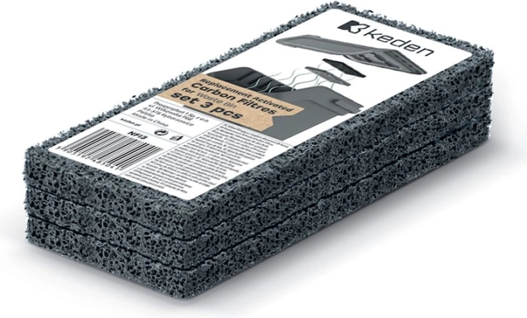Praktyczny zestaw trzech filtrów z aktywnym węglem do koszy na śmieci Kaddi Q skutecznie pochłania nieprzyjemne zapachy, redukuje opary i przyczynia się do czystszego i świeższego otoczenia w domu oraz biurze. Dzięki kompaktowym wymiarom filtry łatwo się montuje, a ich szybka wymiana oszczędza czas.