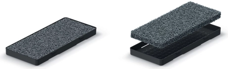 Porowata struktura aktywnego węgla pochłania zapachy i opary, pomagając utrzymać czystsze i świeższe powietrze wokół kosza.