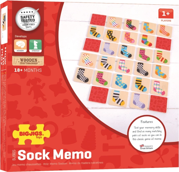 W grze wygrywa ten, kto na koniec ma najwięcej sparowanych skarpetek. Tym zawała się nie kończy, gdyż memory wspiera także interaktywną zabawę z innymi dziećmi, rozwijając ich zasób słów. Jest wykonane z wysokiej jakości drewna, które spełnia europejskie normy bezpieczeństwa.