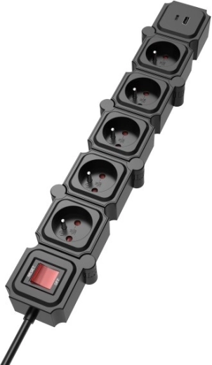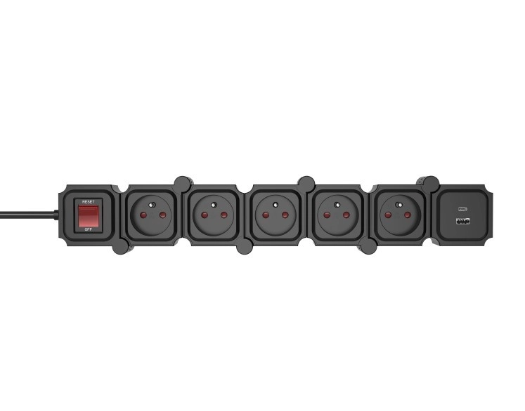 Inteligentna modułowa listwa/przedłużacz z pięcioma gniazdami i zintegrowanymi portami USB-A/USB-C do szybkiego ładowania oferuje maksymalną elastyczność, bezpieczne użytkowanie oraz wygodne zasilanie wielu urządzeń jednocześnie. Dzięki obrotowym segmentom łatwo dopasujesz ją do narożników i ciasnych miejsc, a wyłącznik z bezpiecznikiem chroni przed przeciążeniem.
