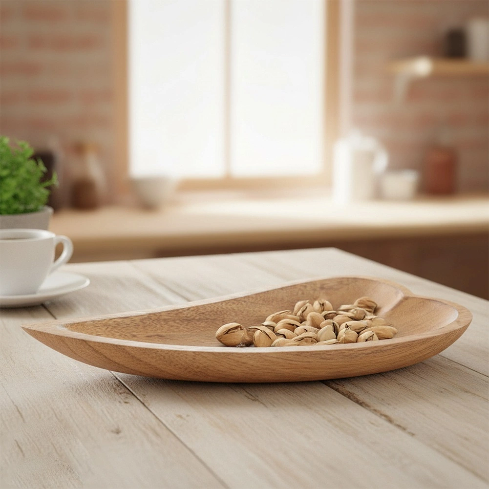 Odkryj uniwersalną miskę/ płaski półmisek do serwowania z drewna mango, wyróżniający się gładką powierzchnią, miękkimi krzywiznami i naturalnym odcieniem. Jest idealny do codziennego użytku i odświętnej uczty – od śniadania, przez desery, po wieczorne przekąski. Dzięki atrakcyjnemu kształtowi pełni również rolę dekoracyjnego elementu wystroju.