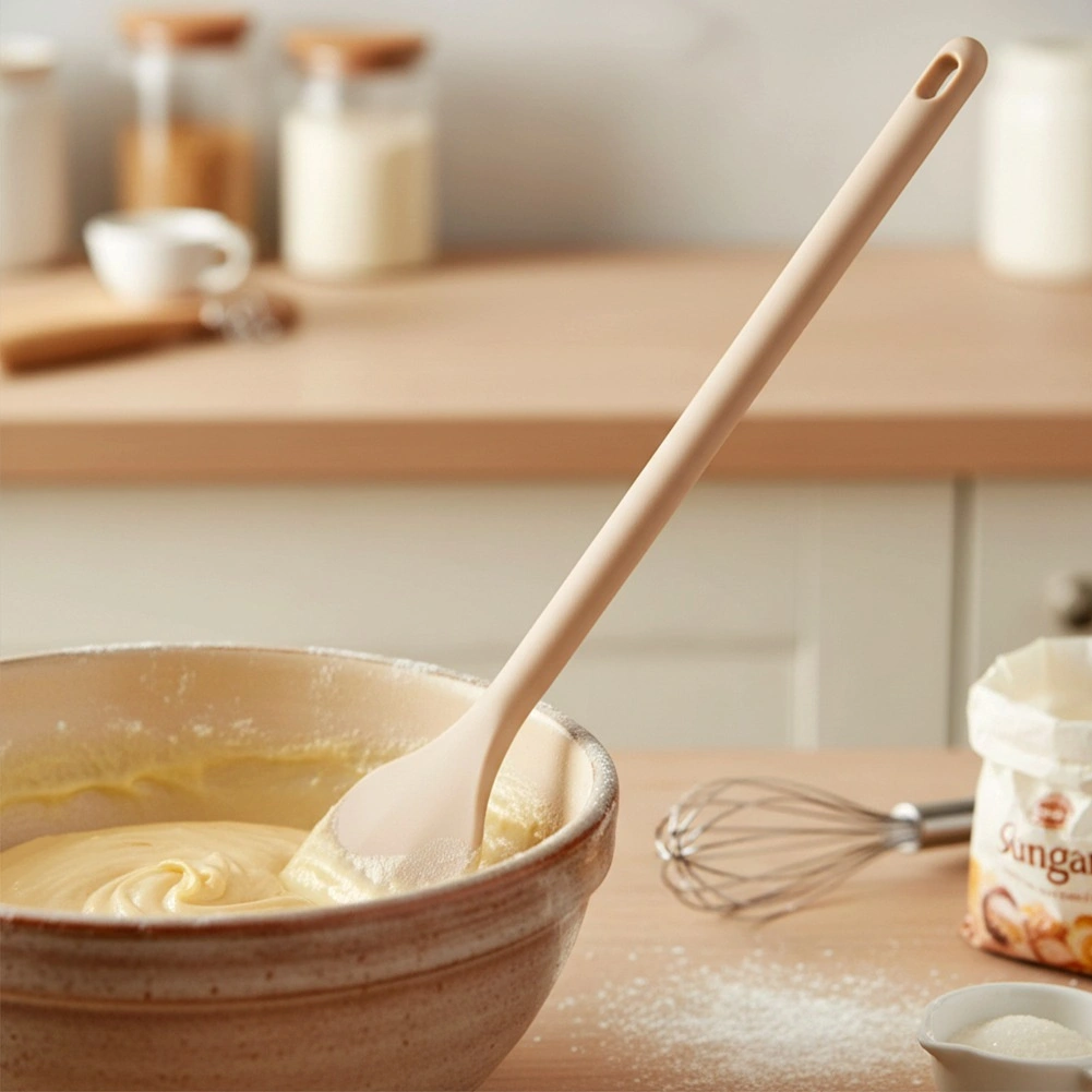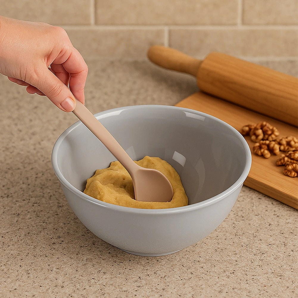 Ta wytrzymała silikonowa łyżka stanie się niezastąpionym pomocnikiem w każdej kuchni. Dzięki elastycznej główce świetnie sprawdza się do mieszania ciast, sosów i zup, a przy tym nie rysuje powierzchni teflonowych, ceramicznych ani granitowych. Silikon nie wchłania zapachów ani płynów, dzięki czemu pielęgnacja jest maksymalnie prosta.