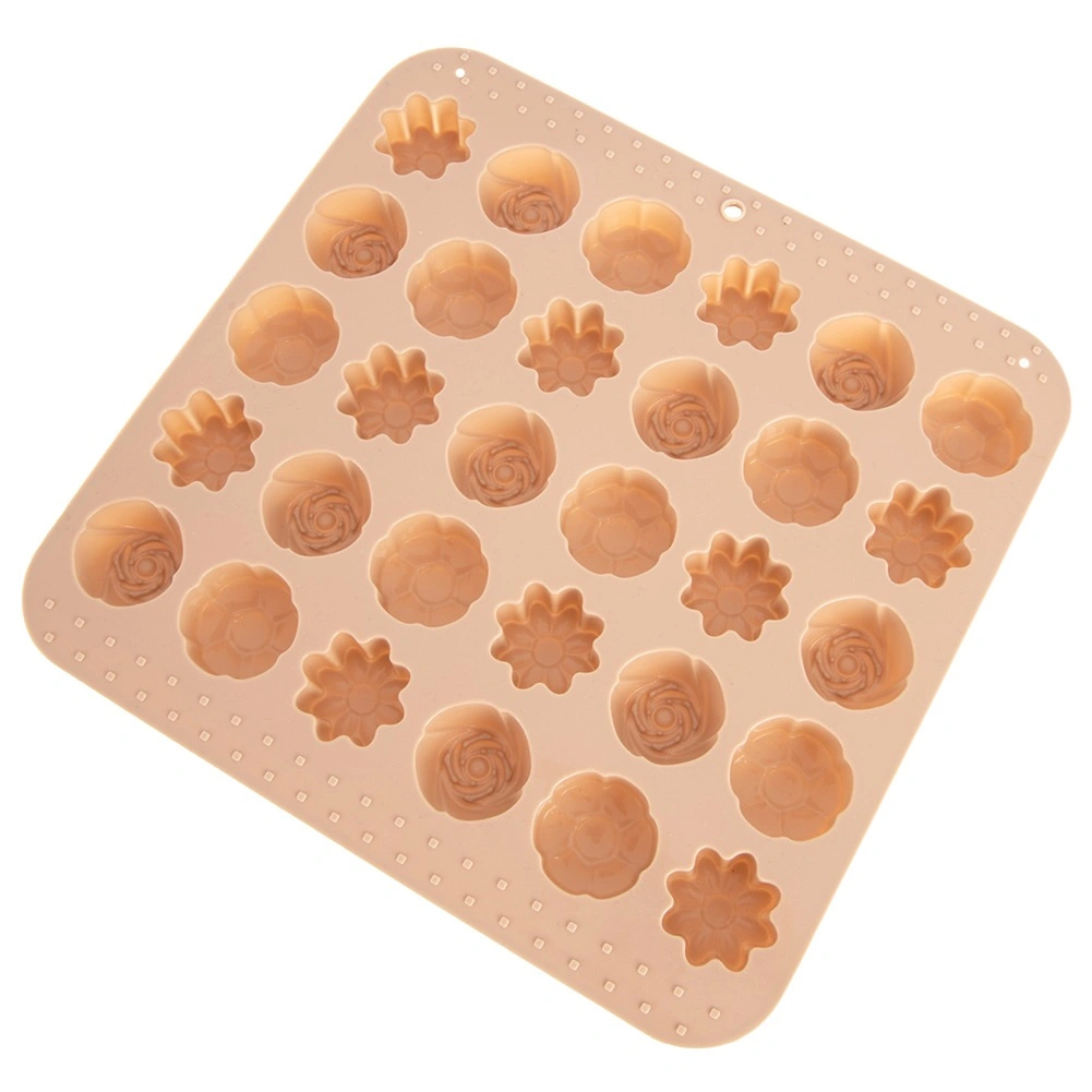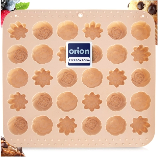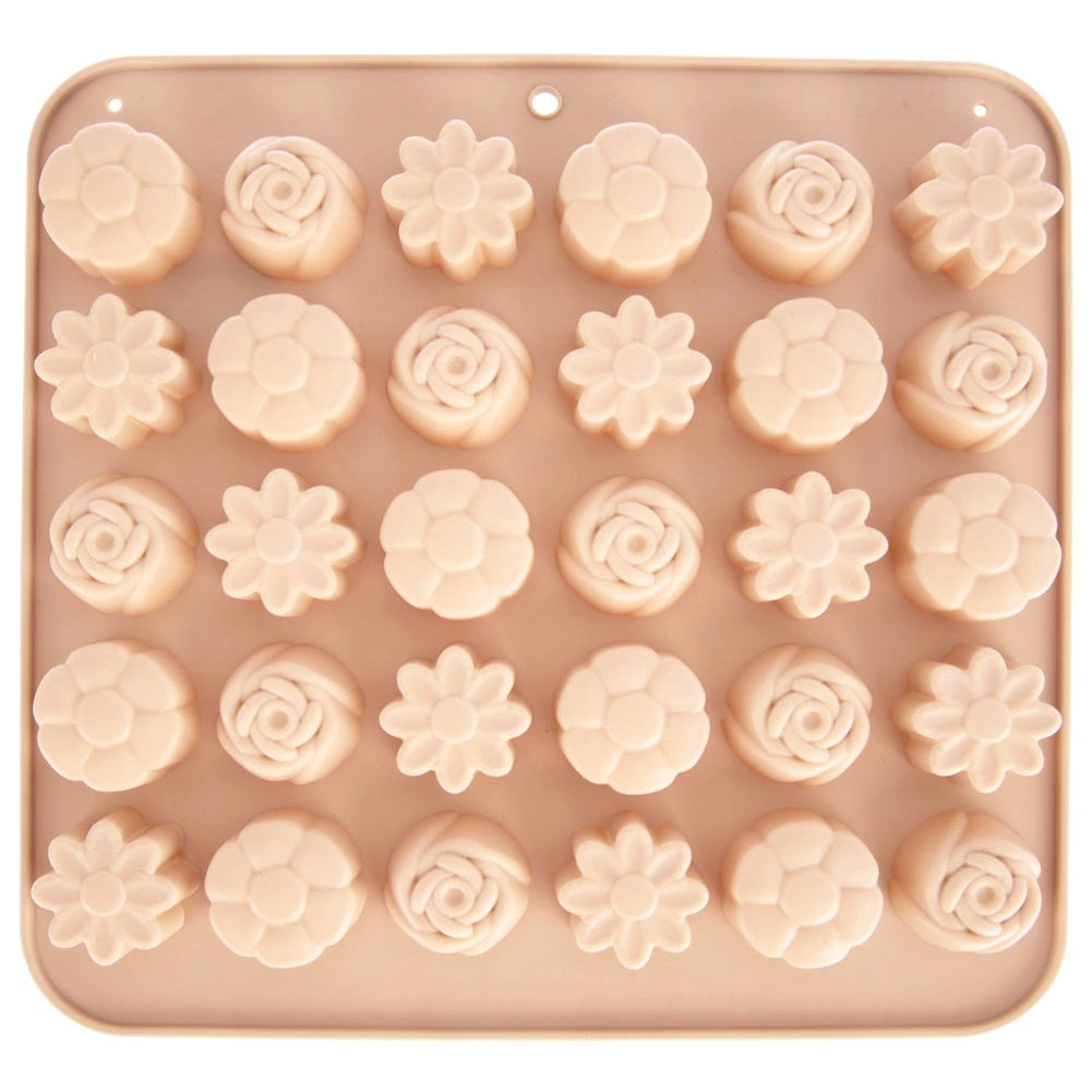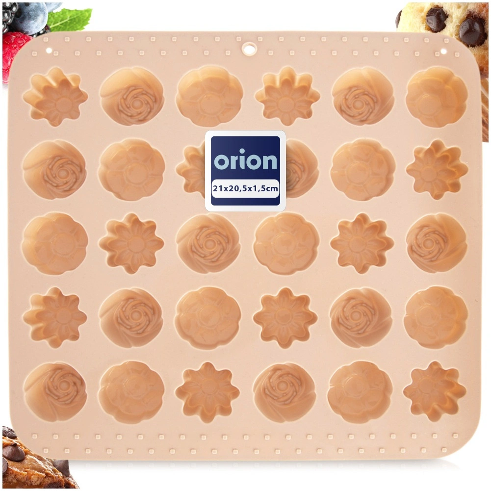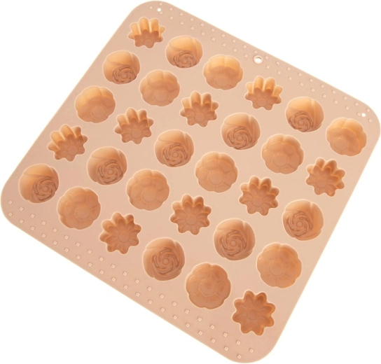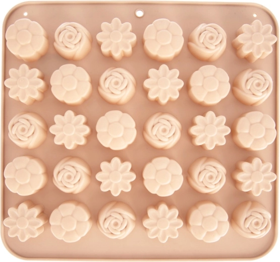 Ta wszechstronna silikonowa forma w beżowym kolorze ułatwia przygotowanie domowych pralin, czekoladek i małych ciasteczek. Oferuje 3 różne kwiatowe wzory i łącznie 30 zagłębień, dzięki czemu z łatwością przygotujesz efektowny poczęstunek i jadalne prezenty. Dzięki elastycznemu i nieprzywierającemu materiałowi gotowe kawałki łatwo się wyjmuje bez potrzeby natłuszczania.