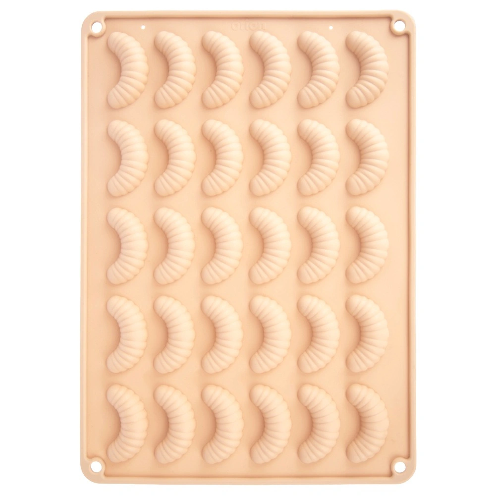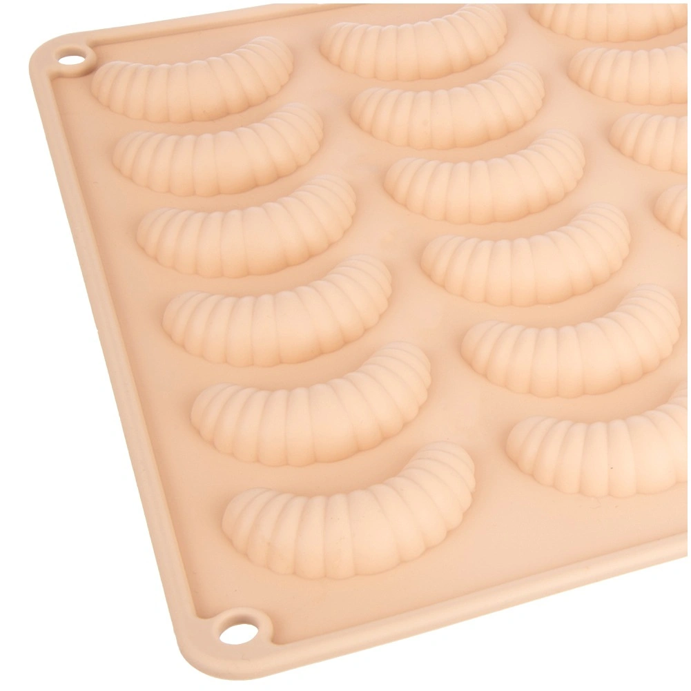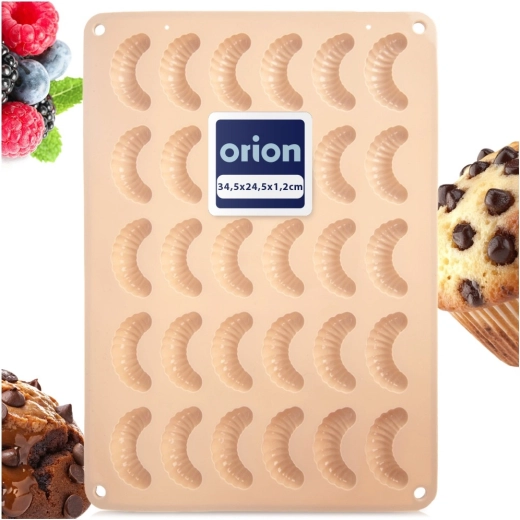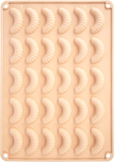 Ta beżowa silikonowa forma pozwoli Ci łatwo przygotować idealnie ukształtowane rogaliki o długości ok. 5,5 cm. Dzięki elastycznemu i nieprzywierającemu materiałowi ciasto nie klei się, a gotowe sztuki z łatwością wyjmiesz bez konieczności natłuszczania czy oprószania. Forma nie przejmuje zapachów ani smaków i doskonale rozprowadza ciepło, zapewniając równomierne wypieczenie.