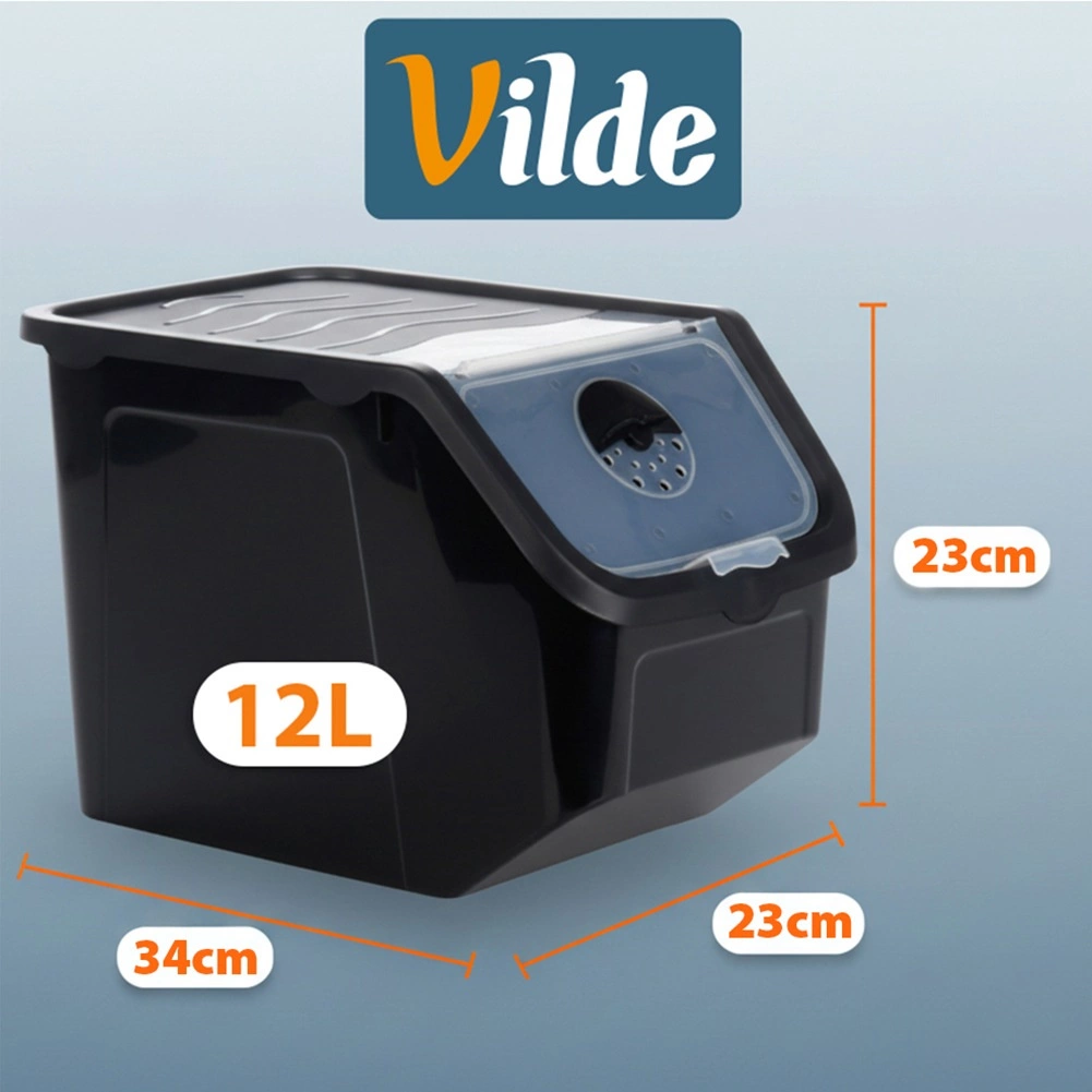 - Pojemność 12 l i kompaktowe wymiary 34 × 23 × 23 cm dla przejrzystego przechowywania w spiżarni lub na blacie.