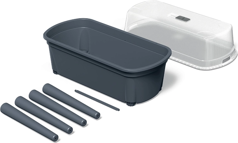 Ułatw sobie produkcję rozsady z rozsadnikiem BLOOMO o długości 77,5 cm w eleganckim kolorze szary kamień. Dzięki poliwęglanowej pokrywie tworzy stabilny mikroklimat, który wspiera kiełkowanie i wzrost młodych roślin. Wysoka przezroczystość pokrywy zapewnia maksymalne doświetlenie dla silnych i zwartych sadzonek.