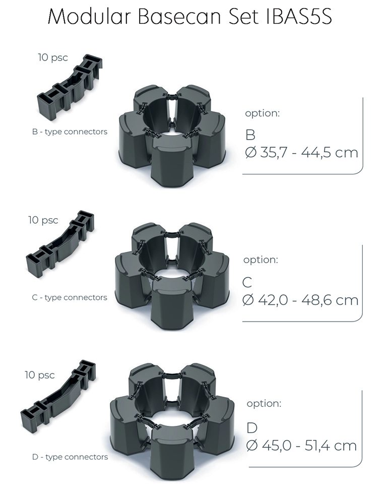 Ø 35,7–44,5 cm – 5 modułów + 10 łączników „B”