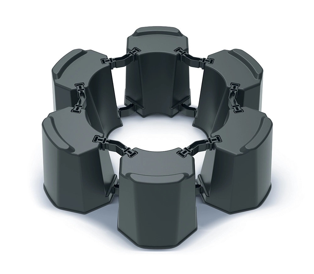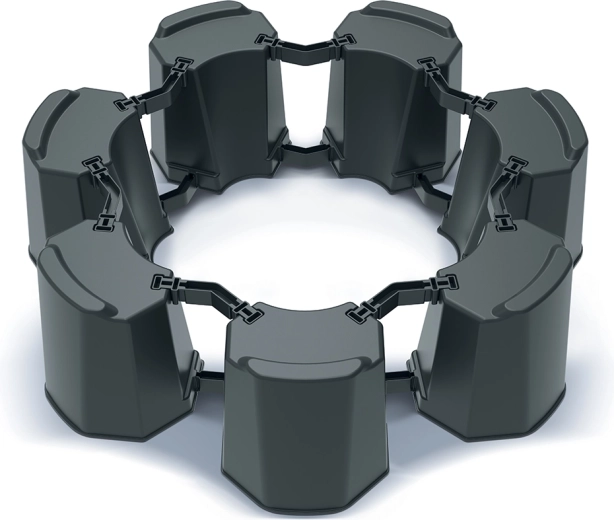 Praktyczna modułowa podstawa do beczek na deszczówkę z wytrzymałego plastiku w kolorze antracytu. Dzięki sprytnej konstrukcji łatwo dopasujesz średnicę podstawy i zapewnisz stabilne, bezpieczne i długotrwałe ustawienie zbiornika. Podniesienie beczki nad ziemię zapewnia wygodny dostęp do kranu spustowego dla szybkiego napełniania konewek i wiader.