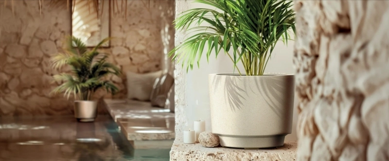 Delikatnie matowa piaskowa powierzchnia i czyste linie podkreślają piękno roślin i pasują do każdego wnętrza oraz przestrzeni zewnętrznej.