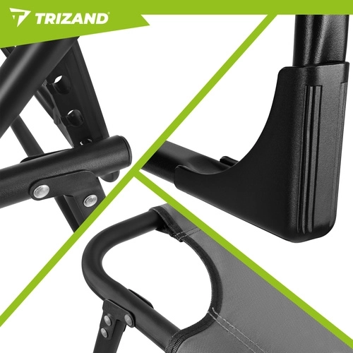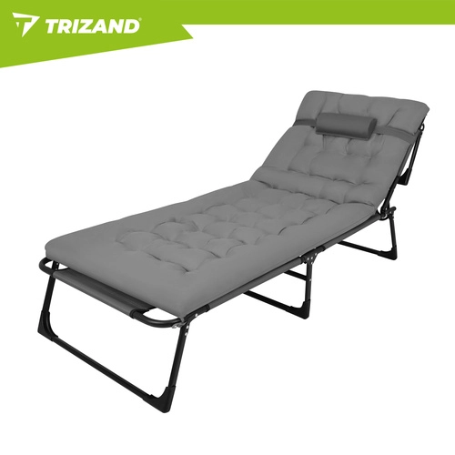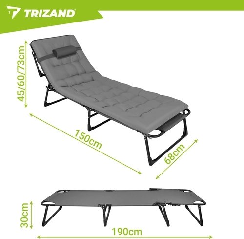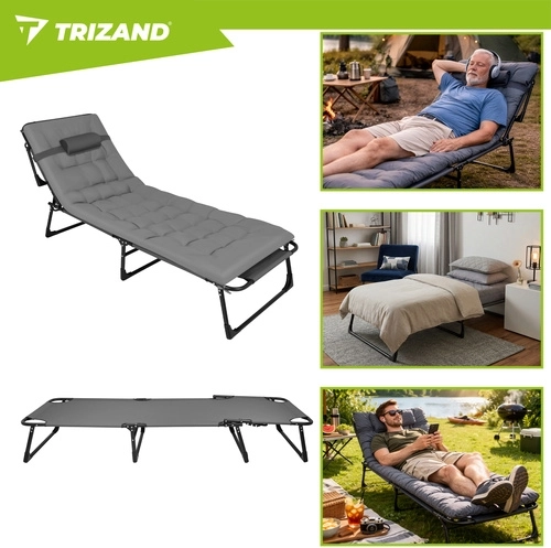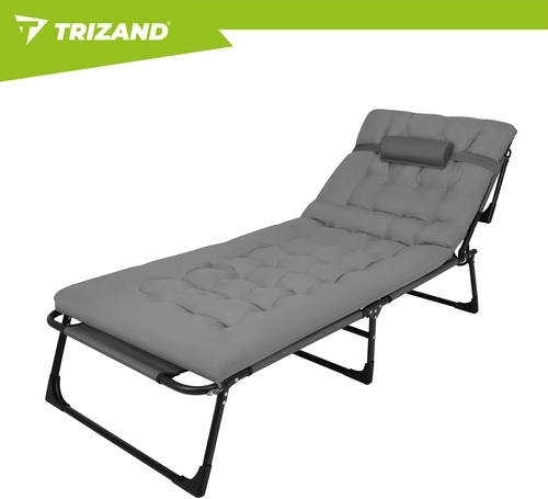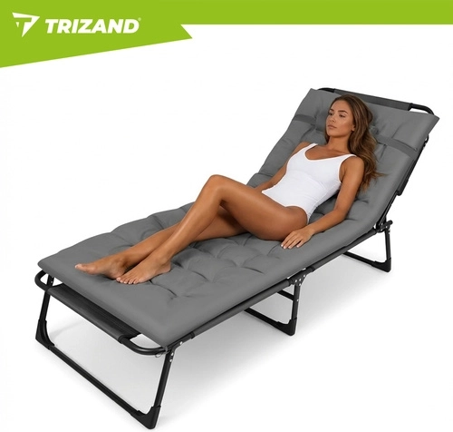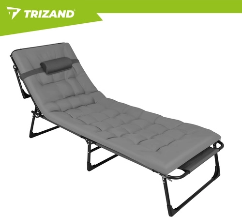 Ciesz się relaksem w ogrodzie, na tarasie i na plaży z leżakiem TRIZAND. Oferuje 4 pozycje oparcia, składany podnóżek oraz miękki, pikowany materac z odpinaną poduszką. Dzięki solidnej stalowej konstrukcji na 4 nogach wytrzymuje do 120 kg, łatwo się czyści (tkanina Oxford) i szybko się składa do transportu.