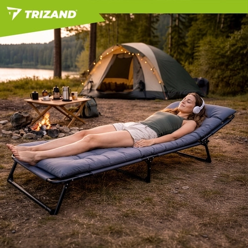 Praktyczny składany leżak TRIZAND łączy komfort leżanki i funkcjonalność łóżka turystycznego. Regulowane oparcie pleców w 4 poziomach oraz regulowany podnóżek pozwalają znaleźć idealną pozycję do czytania, opalania i popołudniowej drzemki. Grubo pikowany materac z podparciem głowy zapewnia miękkie podparcie na całej długości ciała.