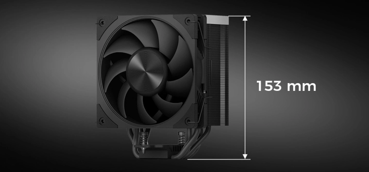Dzięki wysokości 153 mm cooler jest kompatybilny z większością obudów i zaprojektowany tak, aby pasował do popularnych płyt w formacie ATX. Świetny wybór dla graczy i twórców treści, którzy szukają cichego, wydajnego i estetycznego chłodzenia z ARGB.
