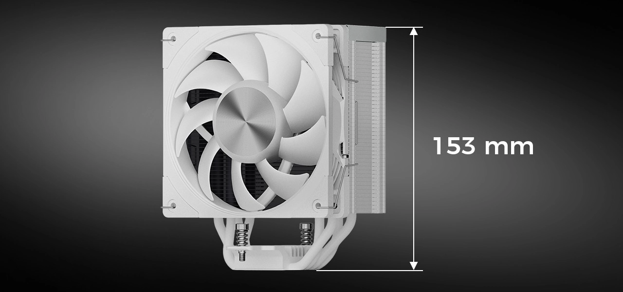 Gotowe do montażu. Doskonale wypolerowana podstawa zapewnia najlepszy kontakt z pastą i IHS procesora dla maksymalnego transferu ciepła. W zestawie znajdziesz także pastę termoprzewodzącą do precyzyjnej i łatwej aplikacji. Dzięki wysokości 153 mm chłodzenie jest kompatybilne z większością obudów ATX i płyt głównych.
