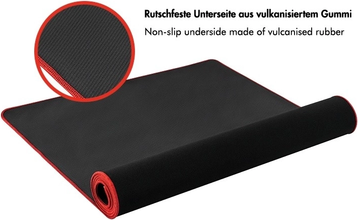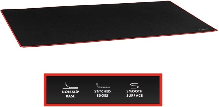 Dolna warstwa o właściwościach antypoślizgowych utrzymuje podkładkę stabilnie na miejscu nawet podczas dynamicznej rozgrywki. Minimalistyczny czarny design z dyskretnym logo pasuje do każdego setupu – od gamingowego po biurowy.