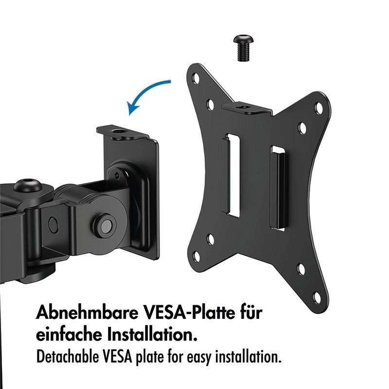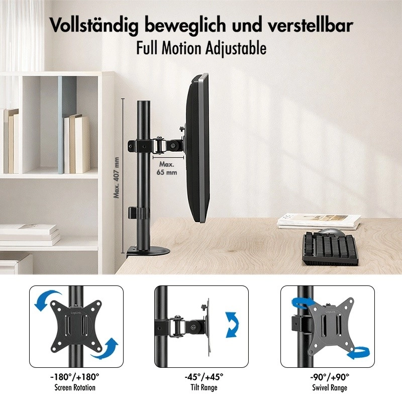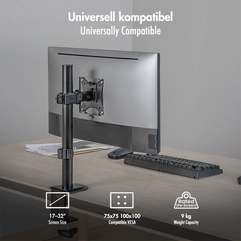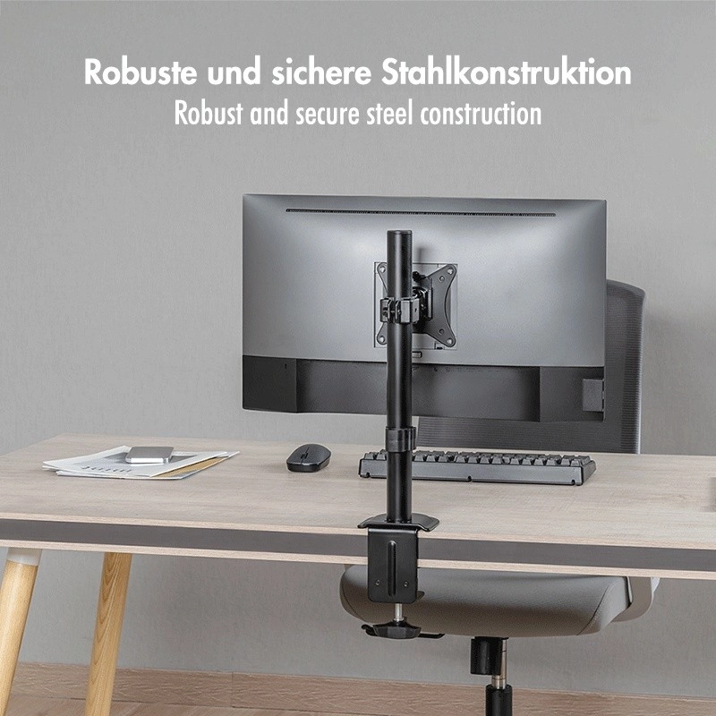 Maksymalnie wykorzystaj przestrzeń na biurku i ustaw monitor dokładnie według swoich potrzeb. Ten czarny uchwyt łączy wytrzymałą stalowo-plastikową konstrukcję z szerokim zakresem regulacji, zapewniając wygodną, zdrową i produktywną pracę.