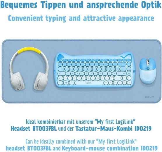 Ekstra duża podkładka pod klawiaturę i mysz w eleganckim niebieskim kolorze wprowadza porządek i wygodę na każdym biurku. Dzięki wymiarom 70 × 30 cm pomieści klawiaturę, mysz i słuchawki, a jednocześnie chroni blat przed zarysowaniami.