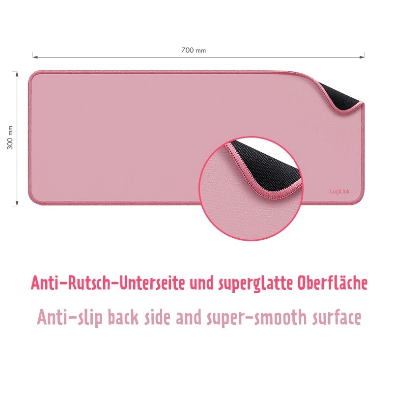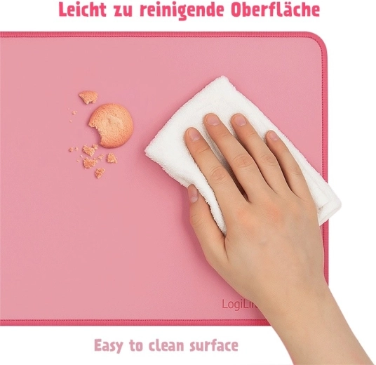 Podkład zaprojektowano do codziennego użytkowania: antypoślizgowa podstawa trzyma się pewnie na miejscu, a płaskie, obszyte krawędzie zwiększają trwałość i zapobiegają strzępieniu. Stylowy róż doda Twojemu biurku wyrazistego charakteru – w biurze, pokoju dziecięcym czy gamingowym setupie.