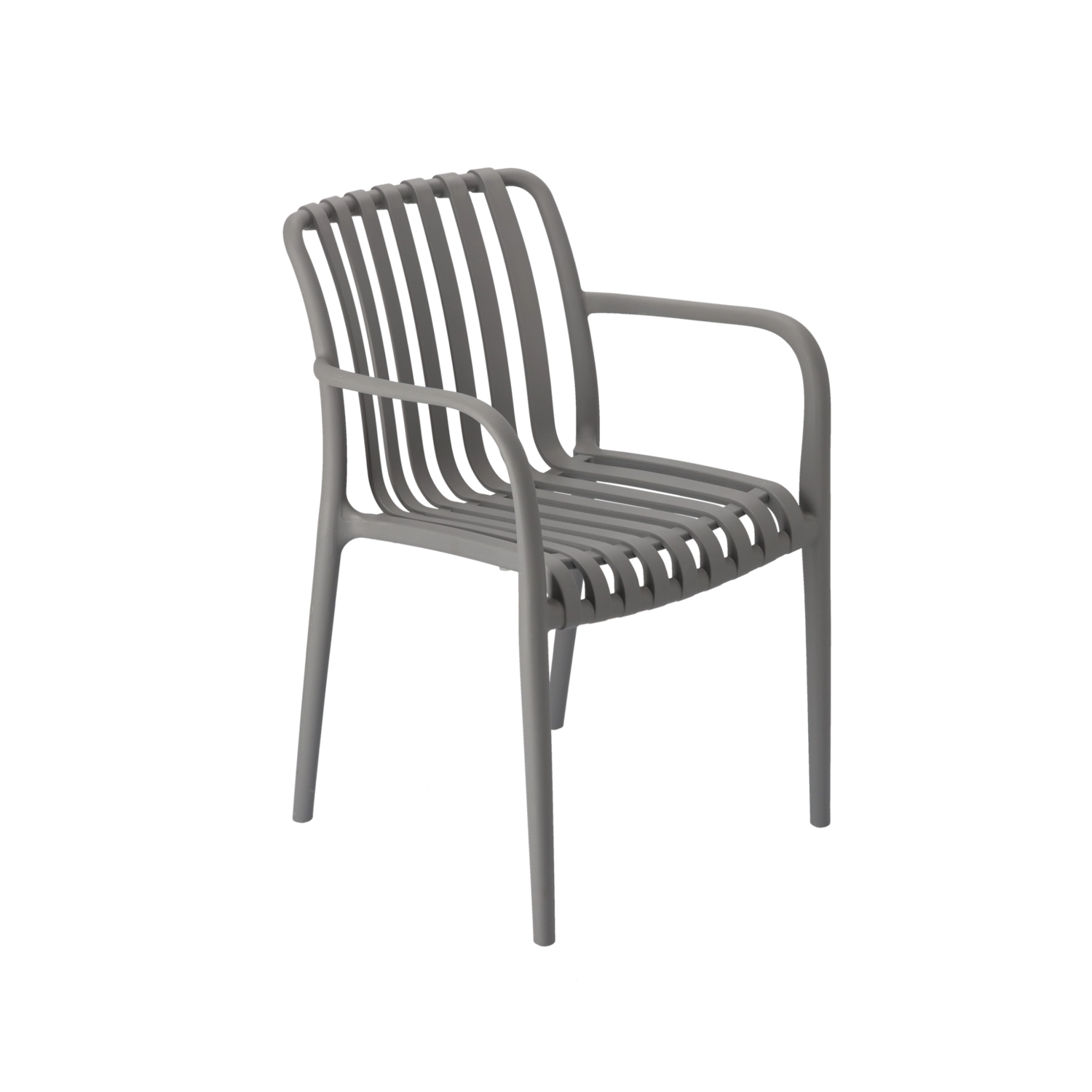 To szare krzesło ogrodowe łączy nowoczesny design z praktycznością. Dzięki materiałowi z filtrem UV na długo zachowuje kolor i wygląd nawet przy ekspozycji na słońce. Jest lekkie, stabilne i dzięki ergonomicznemu kształtowi zapewnia komfortowe podparcie pleców do codziennego użytkowania w ogrodzie, na tarasie czy balkonie.