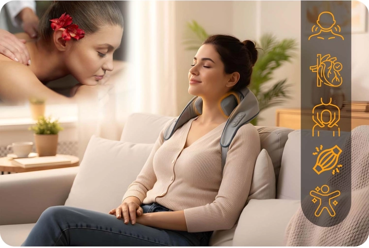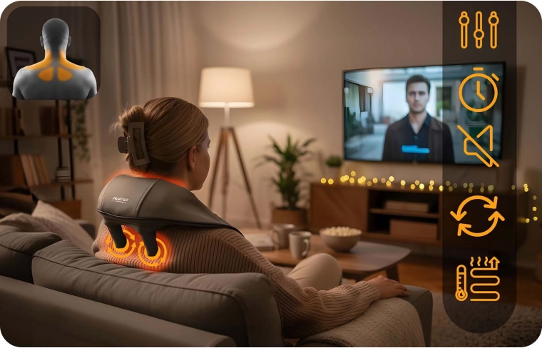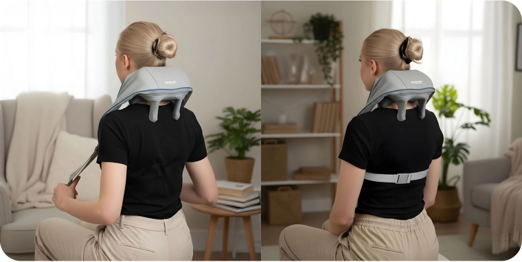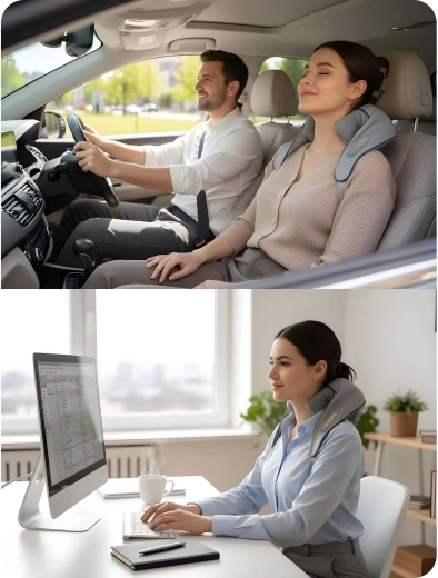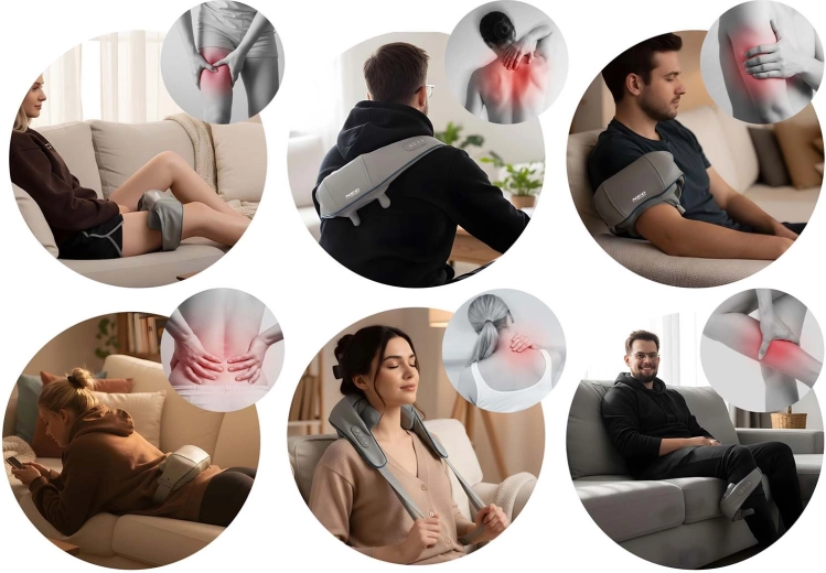 Doświadcz masażu jak u profesjonalisty. Ten ergonomiczny masażer wiernie odwzorowuje technikę shiatsu – głębokie ugniatanie skutecznie rozluźnia odcinek szyjny, mięśnie czworoboczne, okolice łopatek i lędźwia. Podgrzewanie wspiera krążenie krwi, zmiękcza napięte mięśnie i potęguje efekt relaksu, a bezprzewodowa konstrukcja oraz ładowanie przez USB‑C dają swobodę użycia.