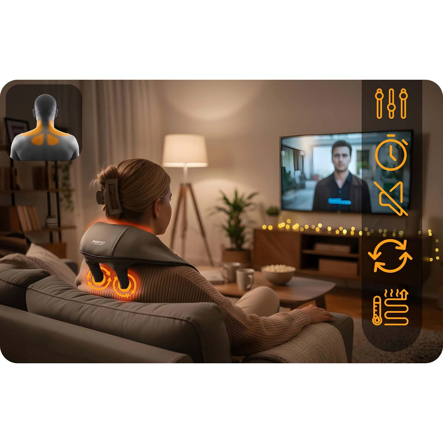 Delikatne ciepło wspiera ukrwienie i zwiększa efekt masażu. Idealne przy długim siedzeniu, po sporcie i w chłodne dni.