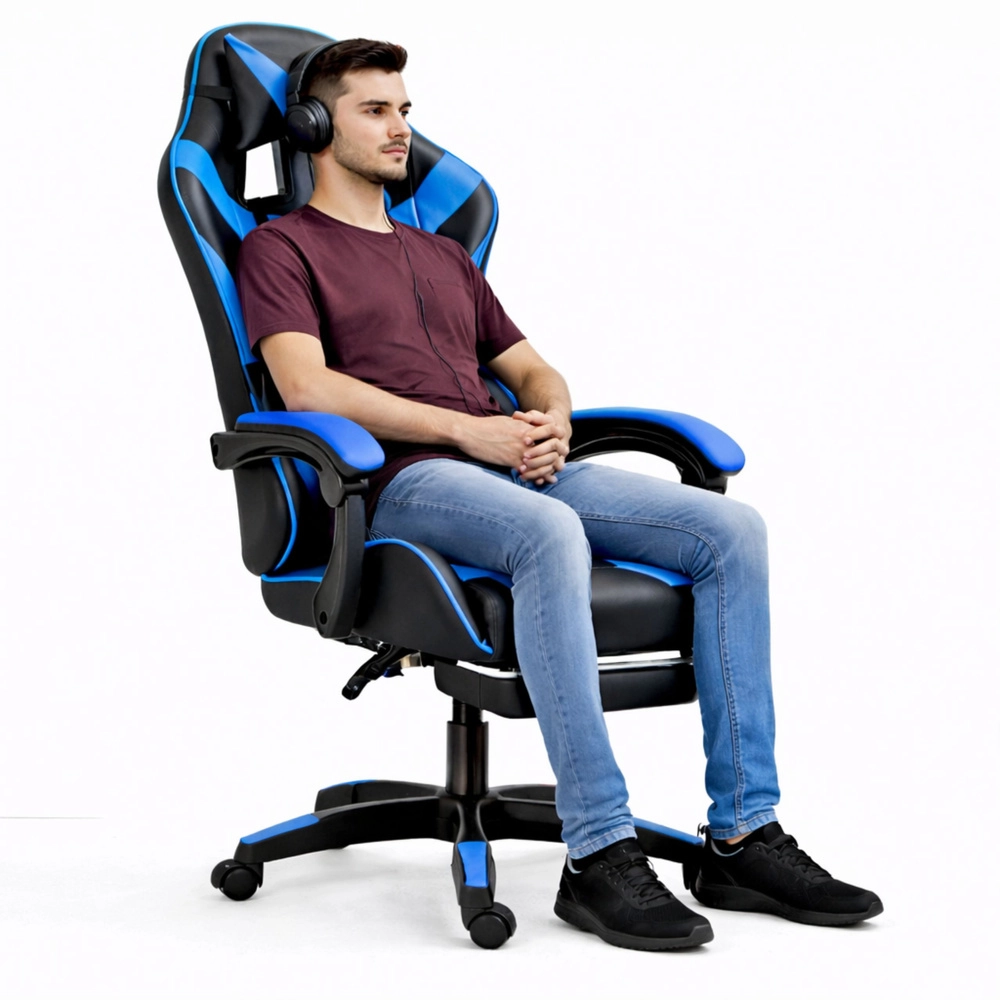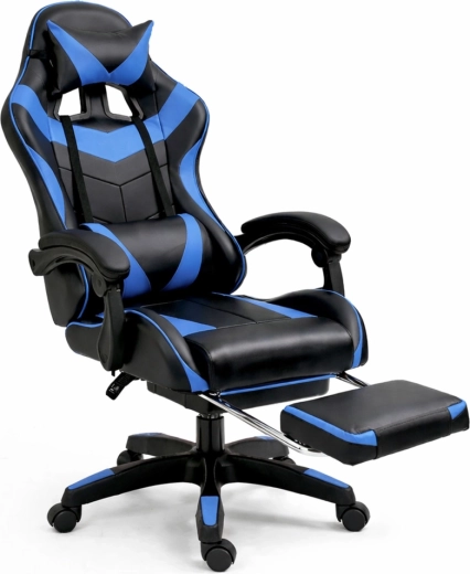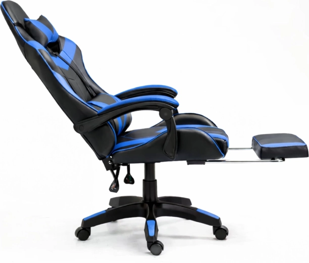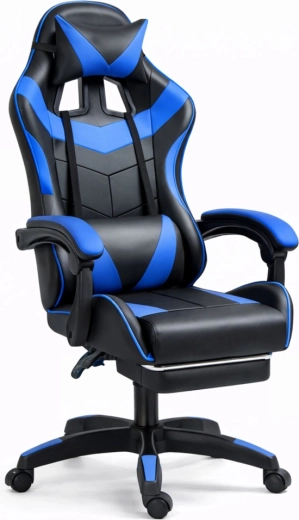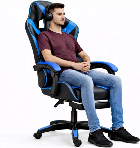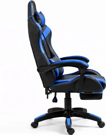 Gamingowe krzesło biurowe LEAN z podnóżkiem, czarno‑niebieskie