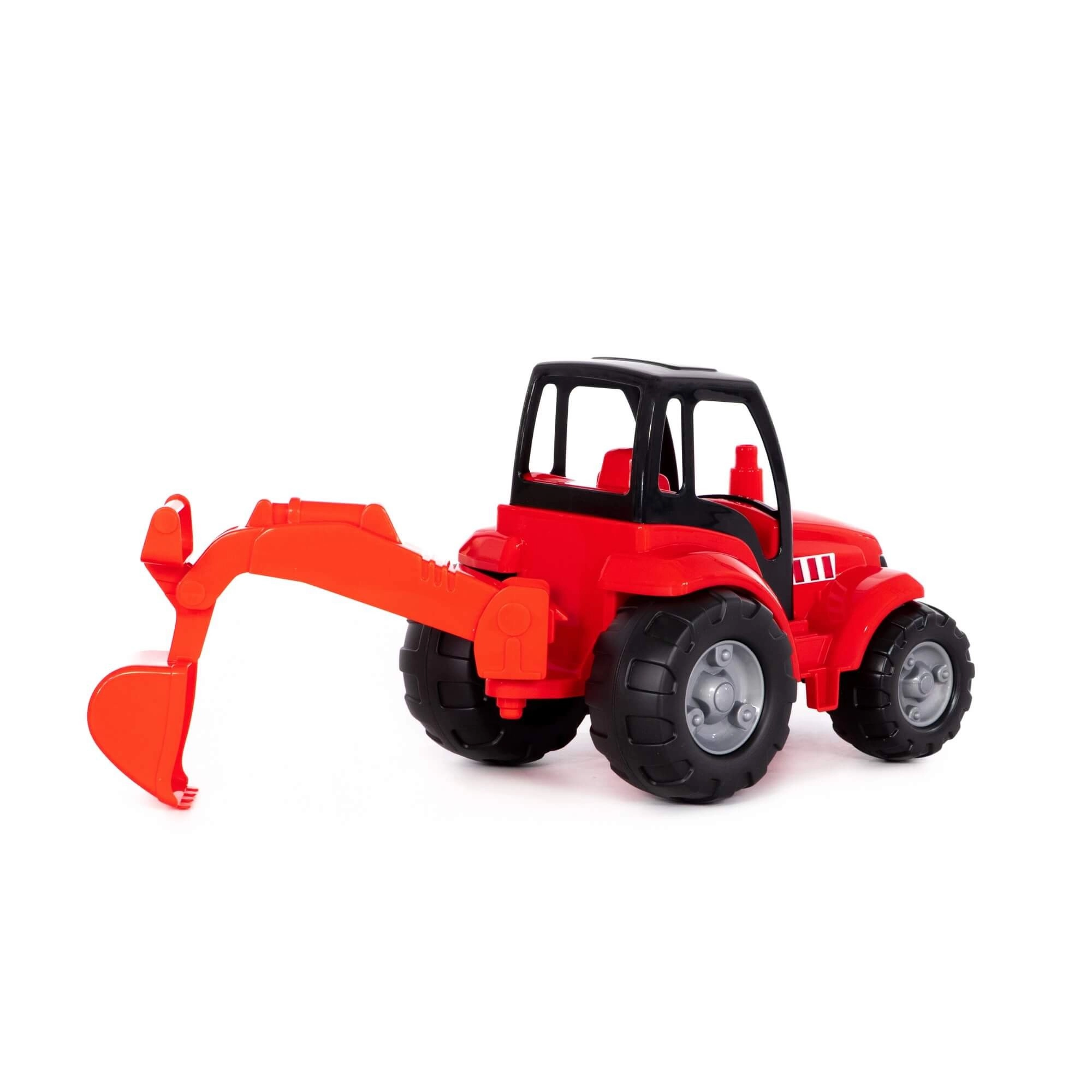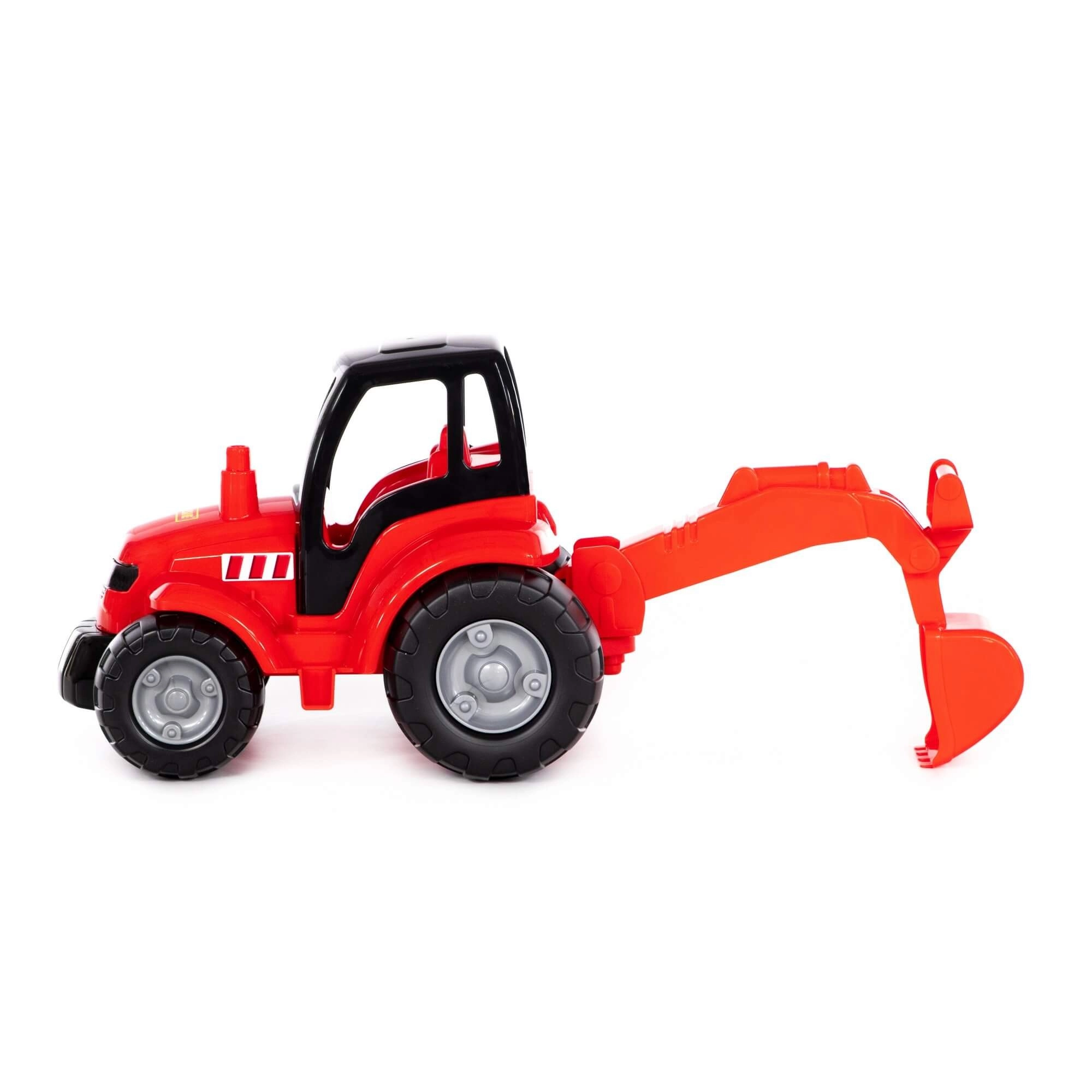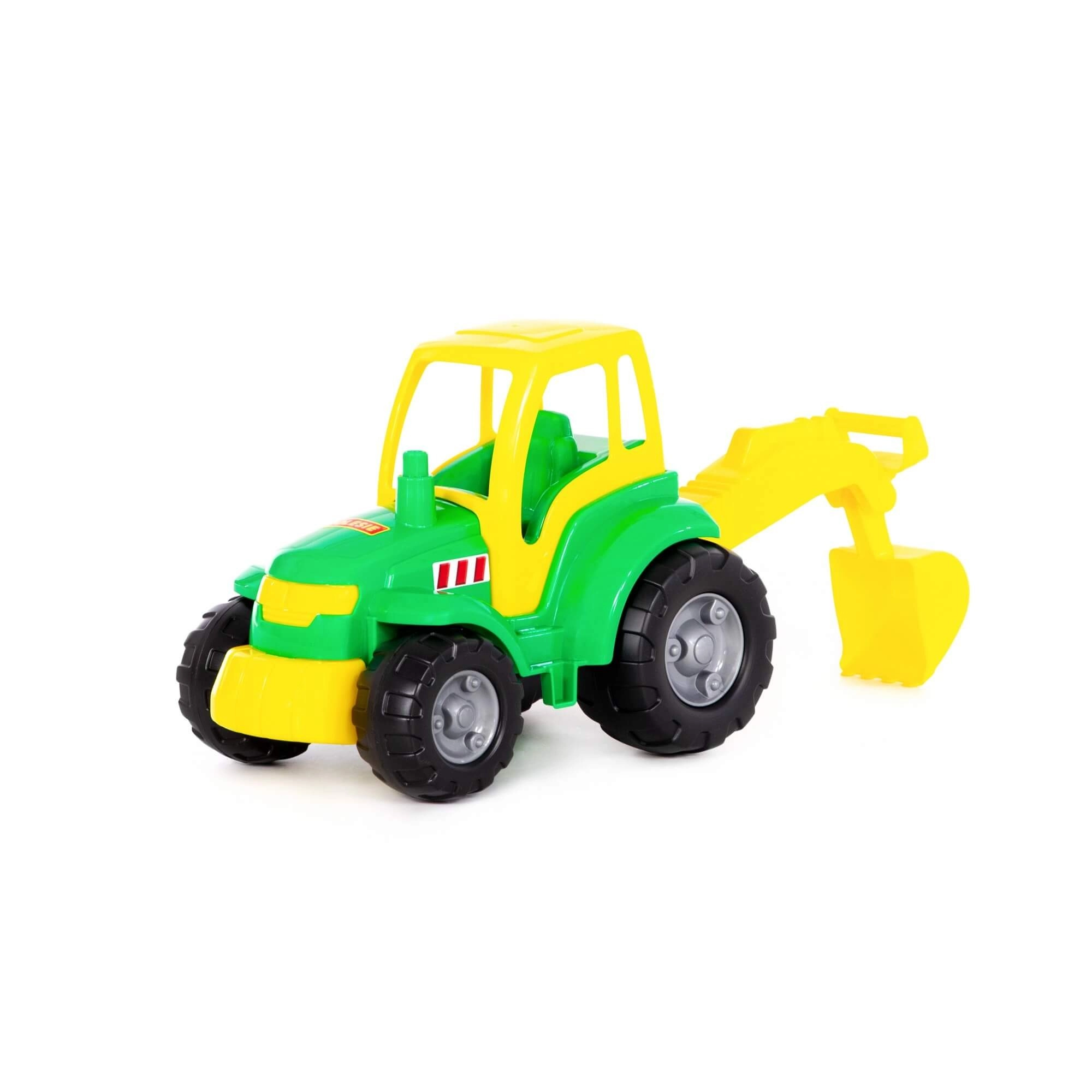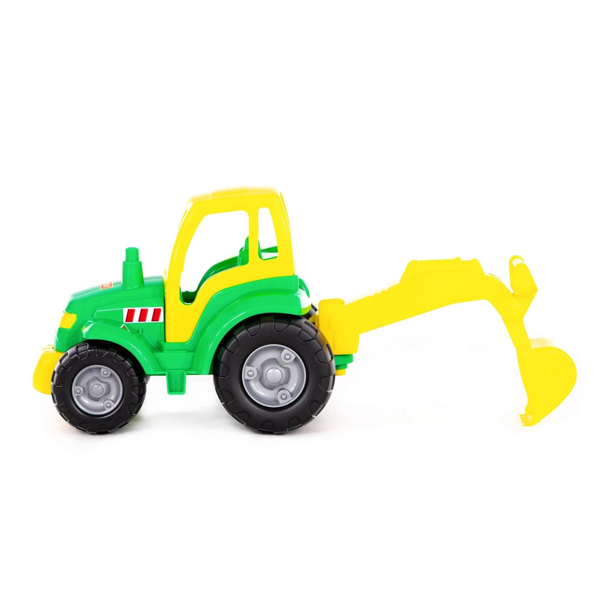 Wytrzymały plastowy traktor z ruchomą łyżką koparki do zabawy w domu i na zewnątrz. Dzieci mogą nabrać, przenosić i wysypywać piasek lub drobne kamyki, rozwijając małą motorykę, koordynację i wyobraźnię. Idealny do piaskownicy, ogrodu i dziecięcego pokoju.