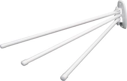 Praktyczny trójramienny wieszak na ręczniki w eleganckim białym kolorze oferuje dużo miejsca do suszenia. Dzięki powłoce antypoślizgowej każdy ręcznik pozostaje stabilnie na swoim miejscu, a metalowa konstrukcja zapewnia długą żywotność. Długość ramion 47 cm zapewnia komfortową powierzchnię suszenia także dla większych ręczników.