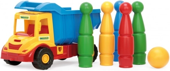 Ciężarówka wywrotka Multi Truck z ruchomą skrzynią ładunkową oferuje rozrywkę dla naszych małych pociech. Zestaw zawiera kręgle z 5 kolorowymi kręglami i kulą.