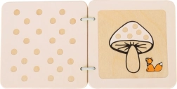 Dzięki kompaktowym wymiarom 9 × 9 × 2,5 cm książeczka idealnie sprawdzi się w domu i w podróży. Naturalny materiał jest łatwy do umycia i odpowiedni do codziennej zabawy. Książeczka pomaga dzieciom rozwijać dotyk, uwagę wzrokową oraz koordynację oko–ręka w formie zabawy.