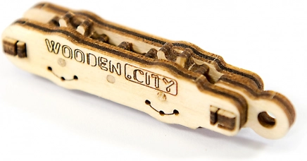 Lekki drewniany brelok z otworem na kółko do kluczy – obróć jedno koło, a drugie zakręci się samo. Stylowy dodatek do kluczy lub plecaka.