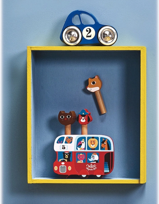 Drewniana gra wyrzutnia Autobus ze zwierzątkami jest zaprojektowana przez artystkę Imgelę P. Arrhenius, która jest znana z zamiłowania do stylu retro. Ta zabawka jest ekologicznie wyprodukowana z naciskiem na ochronę środowiska. Autobus zawiera postacie różnych zwierzątek, którymi dzieci mogą łatwo sterować i wyskakiwać. Zabawka wspiera rozwój motoryki i wyobraźni u dzieci.