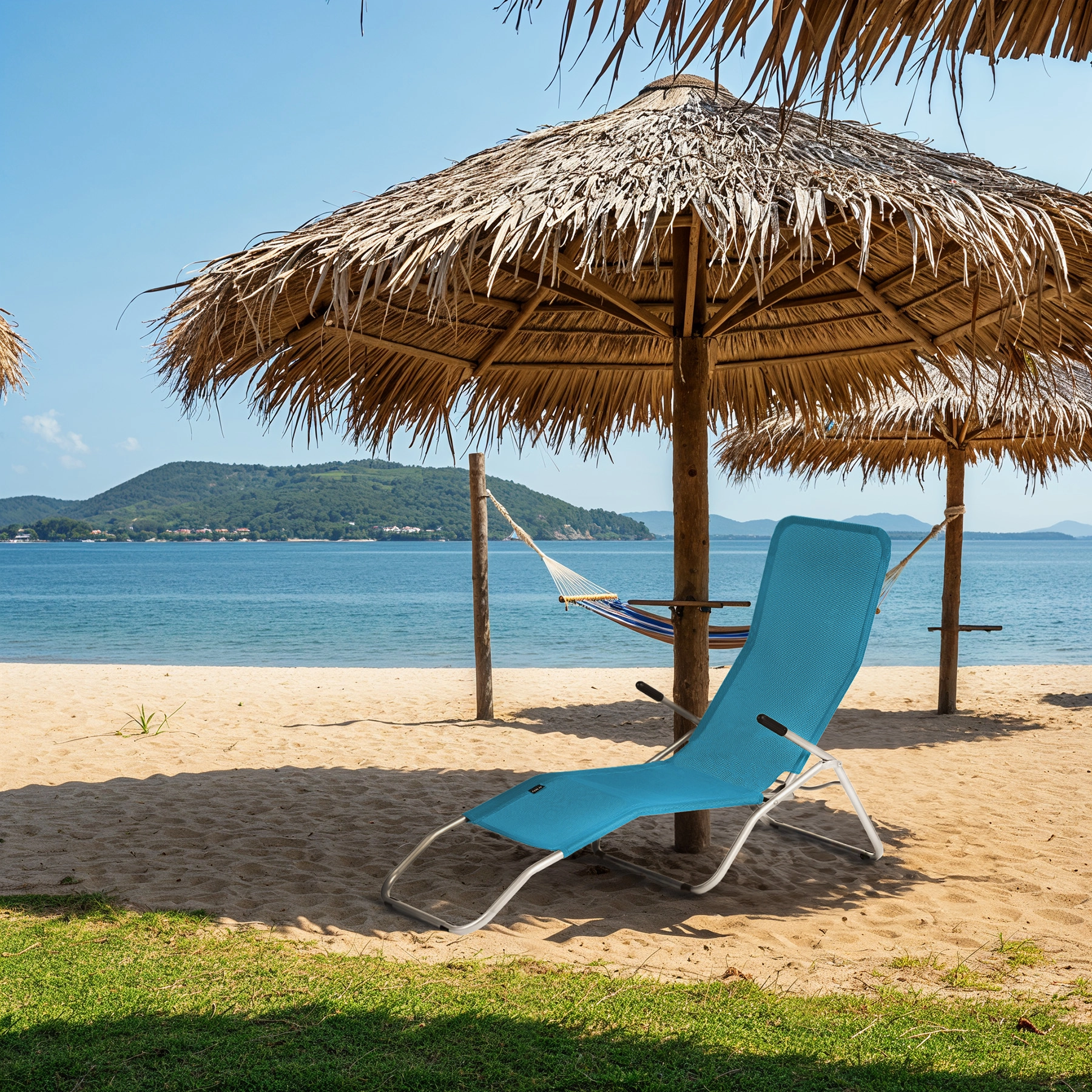 Model jest w pełni składany i gotowy do natychmiastowego użycia bez montażu. Niska masa 5 kg ułatwia przenoszenie i transport w samochodzie. Idealny do ogrodu, na taras, przy basenie, na kemping i na plażę.