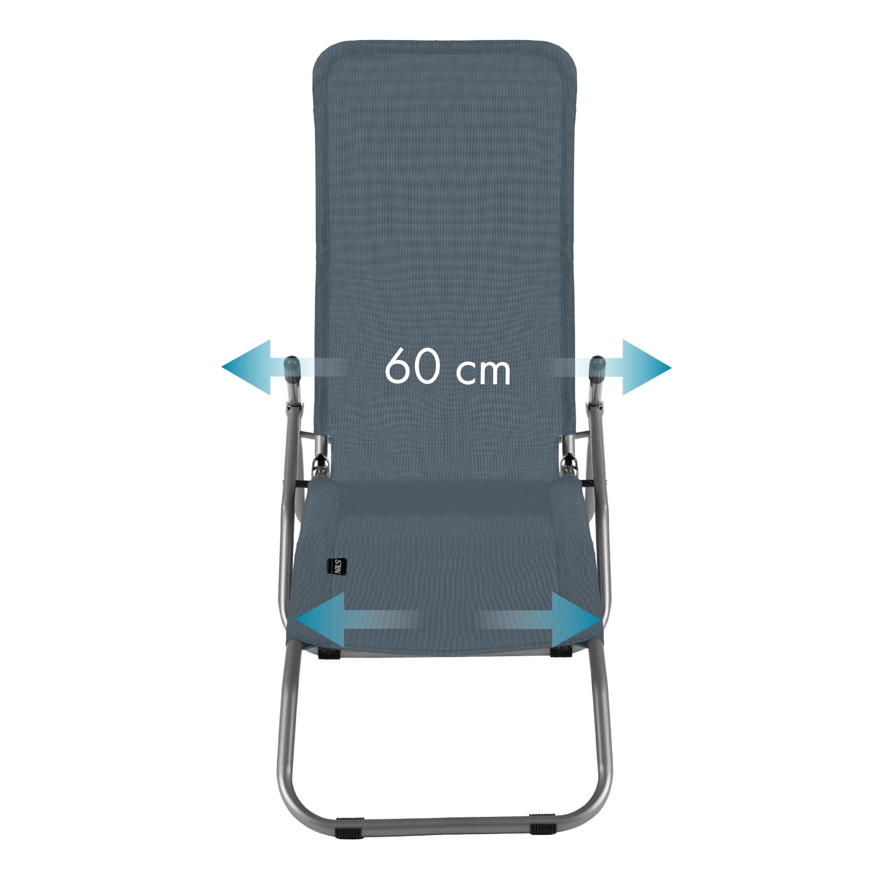 Dzięki płynnej zmianie nachylenia łatwo przejdziesz z pozycji siedzącej do leżącej, jedynie równoważąc środek ciężkości. Przewiewna struktura materiału wspiera cyrkulację powietrza i zwiększa komfort w ciepłą pogodę. Konstrukcja jest składana, więc leżak szybko spakujesz w podróż i wykorzystasz gdziekolwiek.
