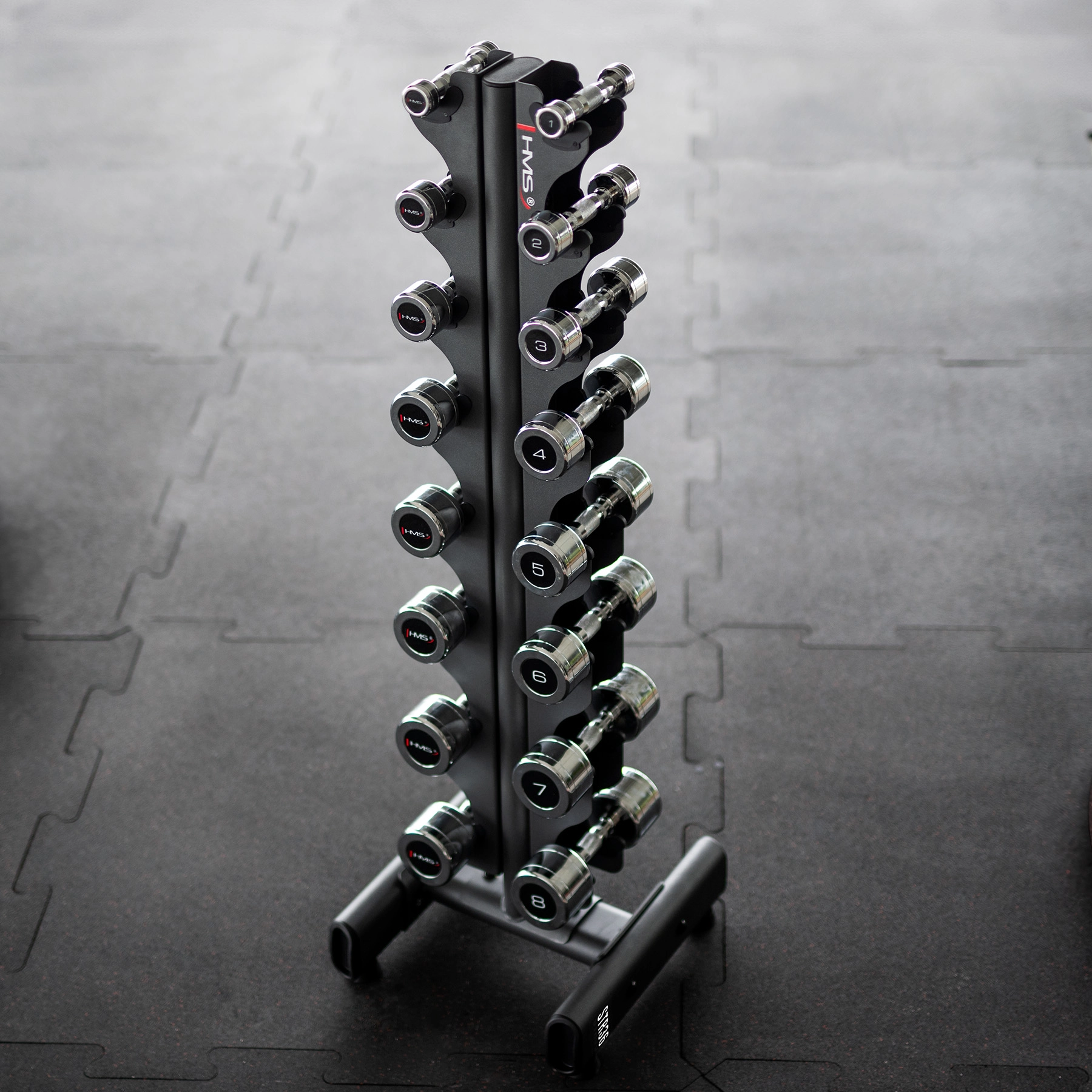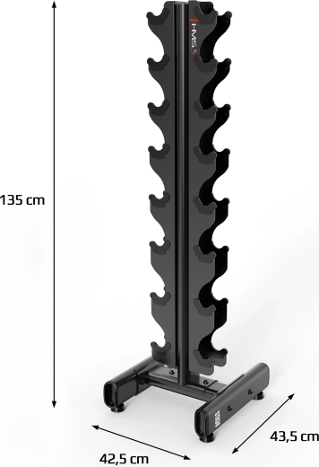 Zaprowadź porządek w swojej strefie treningowej dzięki stojakowi na hantle HMS, który mieści 8 par hantli w zakresie około 1–8 kg. Dzięki pionowemu, oszczędzającemu miejsce designowi sprawdzi się w domowych siłowniach, butikowych studiach i mniejszych klubach fitness.