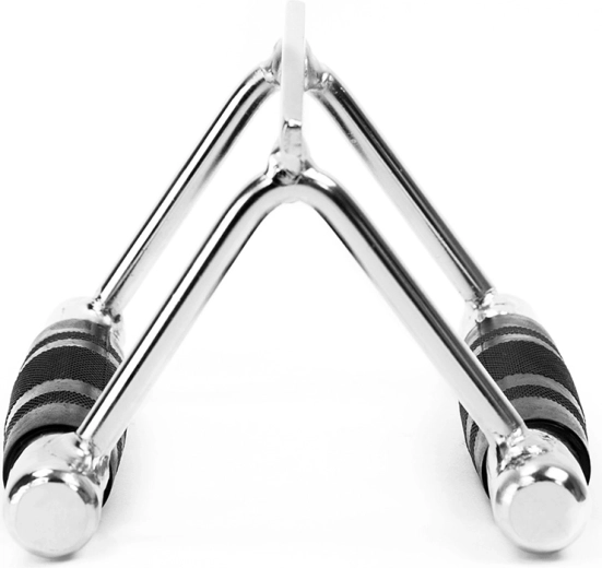 Solidny korpus z chromowanej stali gwarantuje długą żywotność i stabilność także przy ciężkich seriach. Uchwyt jest idealny do ściągań dolnego wyciągu, przyciągania sztangi w przegubie landmine oraz ściągań z wąskim chwytem na maszynach z wyciągiem.