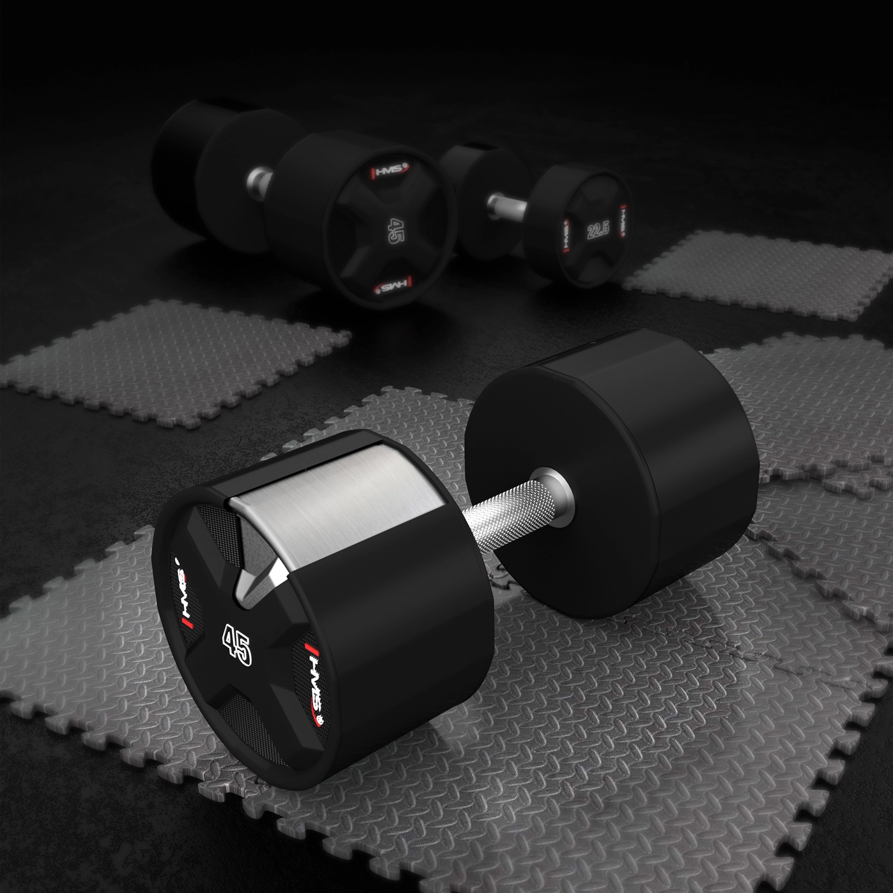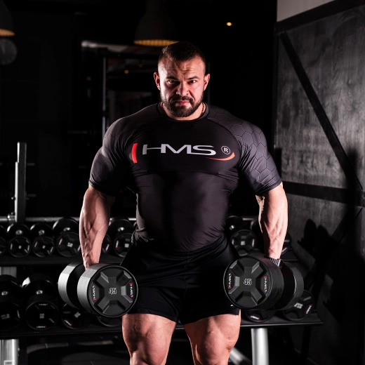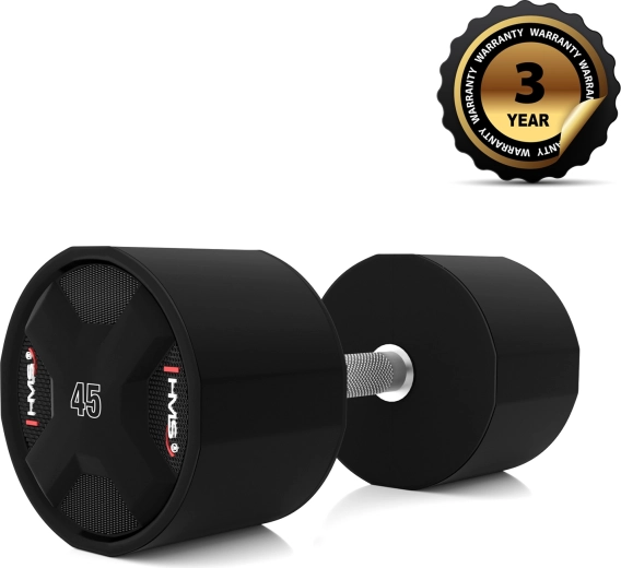 Poliuretanowa hantla jednoręczna HMS 45 kg łączy solidny stalowy rdzeń z odlewaniem poliuretanem (CPU) dla maksymalnej trwałości, stabilnego kształtu i minimalnej konserwacji. Chromowany, radełkowany uchwyt gwarantuje pewny chwyt nawet przy najcięższych seriach, dzięki czemu możesz skupić się na wydajności i technice.
