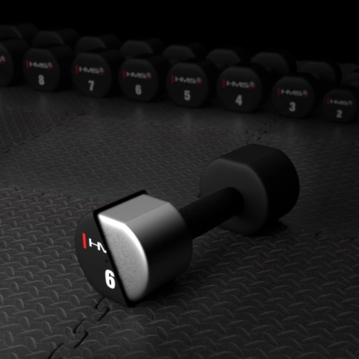 Hantle HMS HPT06 łączą solidny stalowy rdzeń i termoplastyczny poliuretan (TPU), który jest elastyczny, odporny na uderzenia i bezzapachowy. Dzięki powierzchni TPU chronią podłogę przed uszkodzeniami i tłumią hałas przy odkładaniu. Wyraźne oznaczenie wagi przyspiesza wybór odpowiedniego obciążenia podczas treningu.