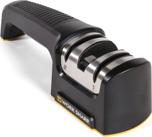 Uniwersalna ostrzałka Work Sharp Pull Through do szybkiego i precyzyjnego ostrzenia noży kuchennych, nożyczek oraz ząbkowanych krawędzi. Oferuje diamentowe wstępne ostrzenie 20° oraz delikatną ceramiczną fazę wykończeniową dla długotrwałej ostrości. Ergonomiczny, gumowany uchwyt zwiększa bezpieczeństwo i pewność trzymania, a kompaktowa konstrukcja ułatwia przechowywanie w szufladzie.