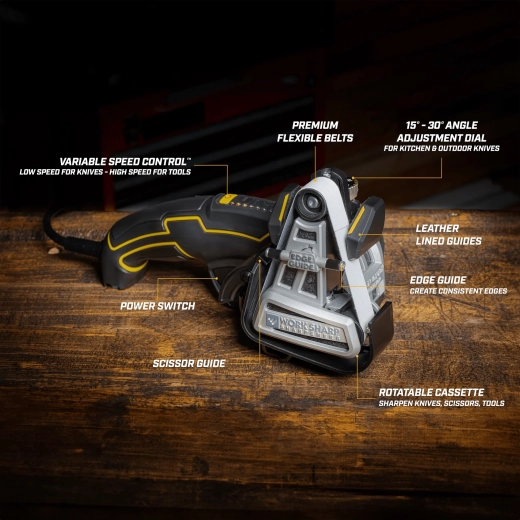 Profesjonalna elektryczna ostrzałka do noży i narzędzi WORK SHARP Ken Onion Edition MK2 oferuje szybkie, precyzyjne i powtarzalne ostrzenie dzięki elastycznym taśmom ściernym, regulowanym prowadnicom kątowym 15°–30° oraz silnikowi z regulacją prędkości obrotowej. Idealna do noży kuchennych, outdoorowych i składanych, nożyczek, siekier oraz narzędzi ogrodowych.