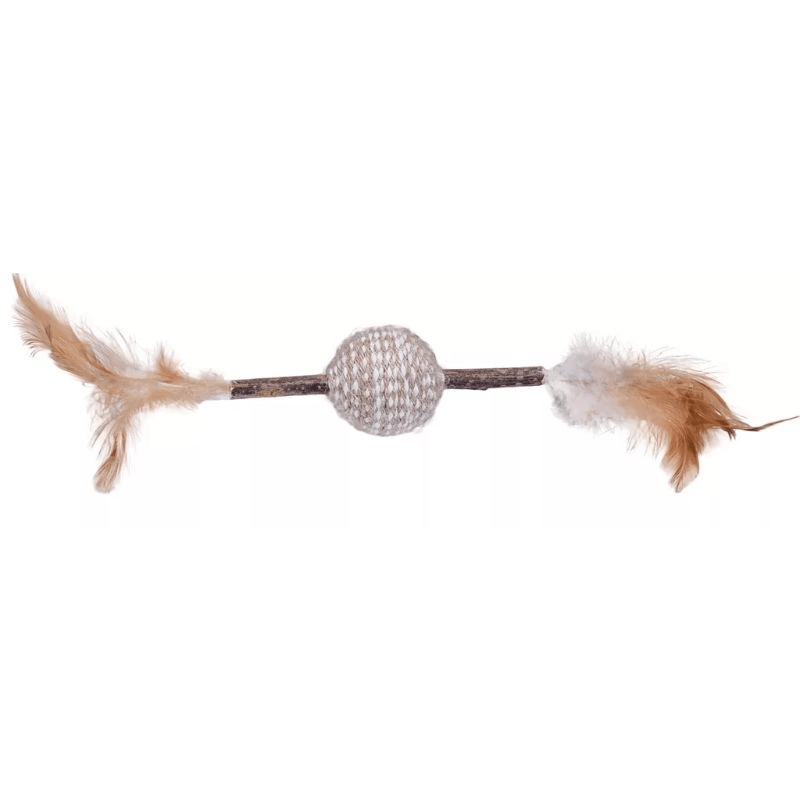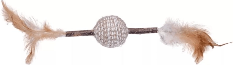 Dzięki sizalowej powierzchni piłeczki zabawka wspiera drapanie i mechaniczne czyszczenie zębów, a delikatne pióra pobudzają odruchy łowieckie i utrzymują uwagę kota. Wędka umożliwia interaktywną zabawę z opiekunem, wzmacnia wzajemną więź i zapobiega nudzie.